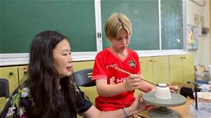 本次展出作品以陶瓷盤、杯等日常器物為創作載體,運用青花瓷技法進行構圖與描繪,呈現層次分明且富含詩意的山水與植物意象,線條流暢、釉色變化細膩,展現學生豐富的創作潛能與對自然環境的觀察體會。