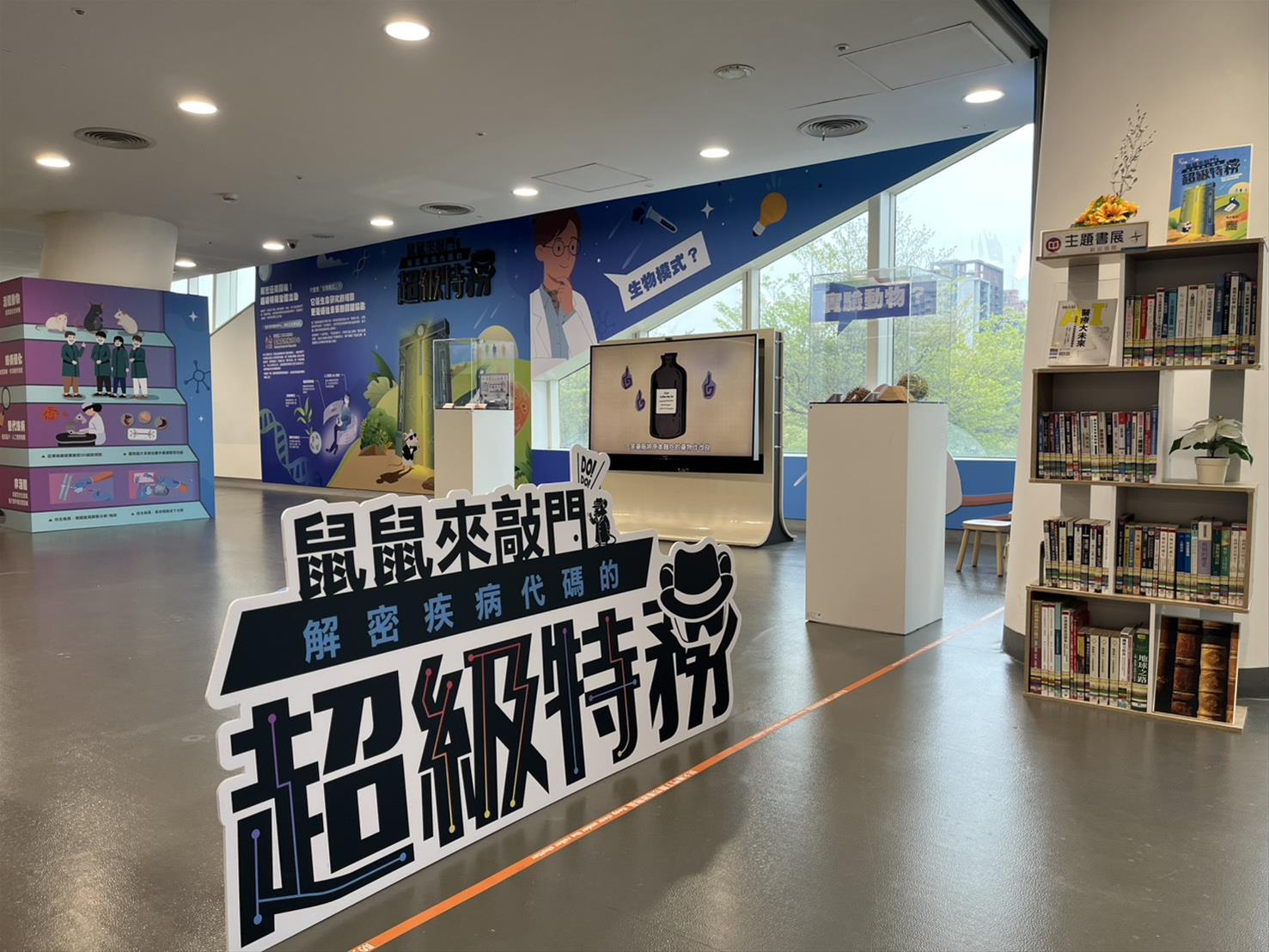 國立公共資訊圖書館(國資圖)作為數位閱讀與跨域學習的領航者,為拉近大眾與頂尖生醫科技的距離,與國家實驗研究院(國研院)國家生物模式中心跨界合作,自3月10日至7月2日在國資圖總館2樓微型展區「科學家的秘密基地@臺中」推出「鼠鼠來敲門-解密疾病代碼的超級特務」科普特展,邀請民眾從體感互動、掃碼體驗與模型展示中認識生動有趣的科學知識,並透過國資圖「生醫特務學:實驗動物、器官晶片、生物模式」電子書展的數位閱讀,完整拼湊出生醫科技守護人類健康的知識拼圖,希望帶領現場參觀的民眾一同見證守護生命的科技進化過程。