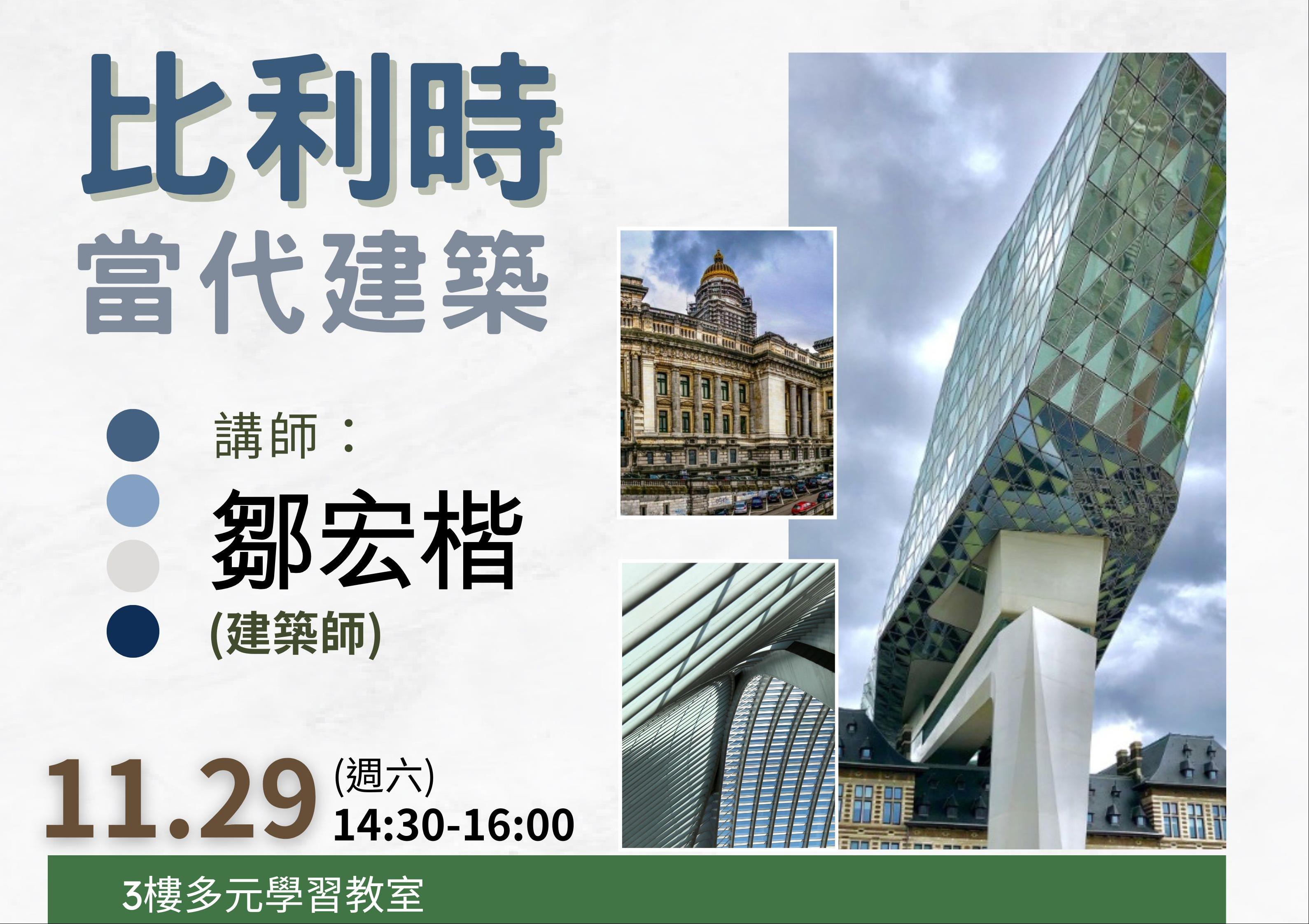 本場講座將帶領觀眾走過近兩個世紀的建築風格演變,以大量影像與案例(如布魯塞爾司法宮、安特衛普港務大樓、烈日高鐵車站)呈現比利時如何透過建築回應國族、社會與環境的變遷。講者也將探討近年歐洲「再生建築」「循環材料」「地方感設計」的思潮,及其對台灣都市更新與文化保存的啟發。