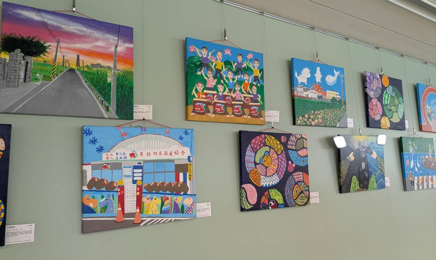 參展的長者們雖然沒有深厚的美術背景,但憑藉著對生活的熱愛,運用基本的線條與空間概念,將複雜的風景解構重建與簡化,僅使用壓克力顏料與畫筆,就開啟了創作之路。