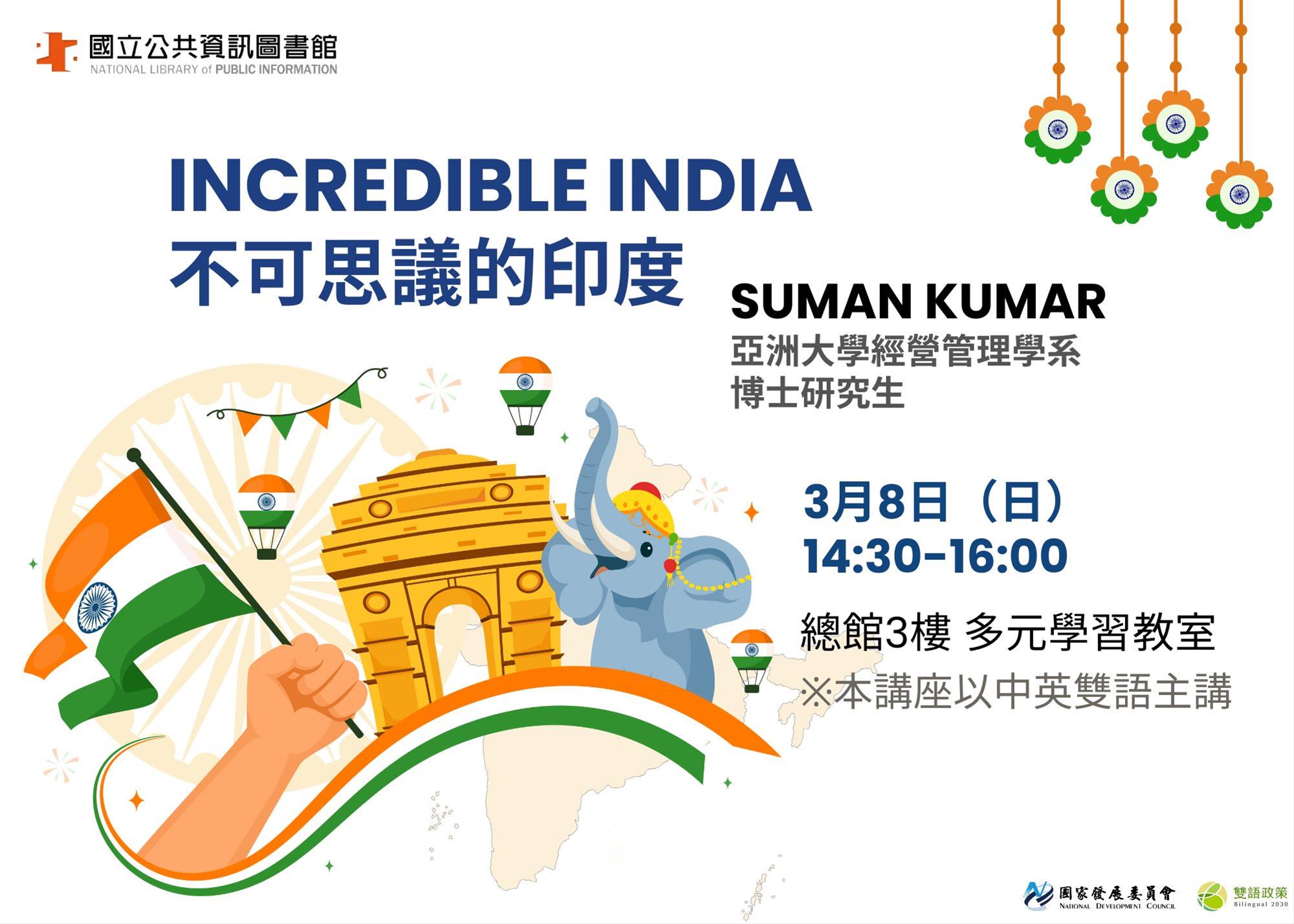 講座主題:INCREDIBLE INDIA 不可思議的印度