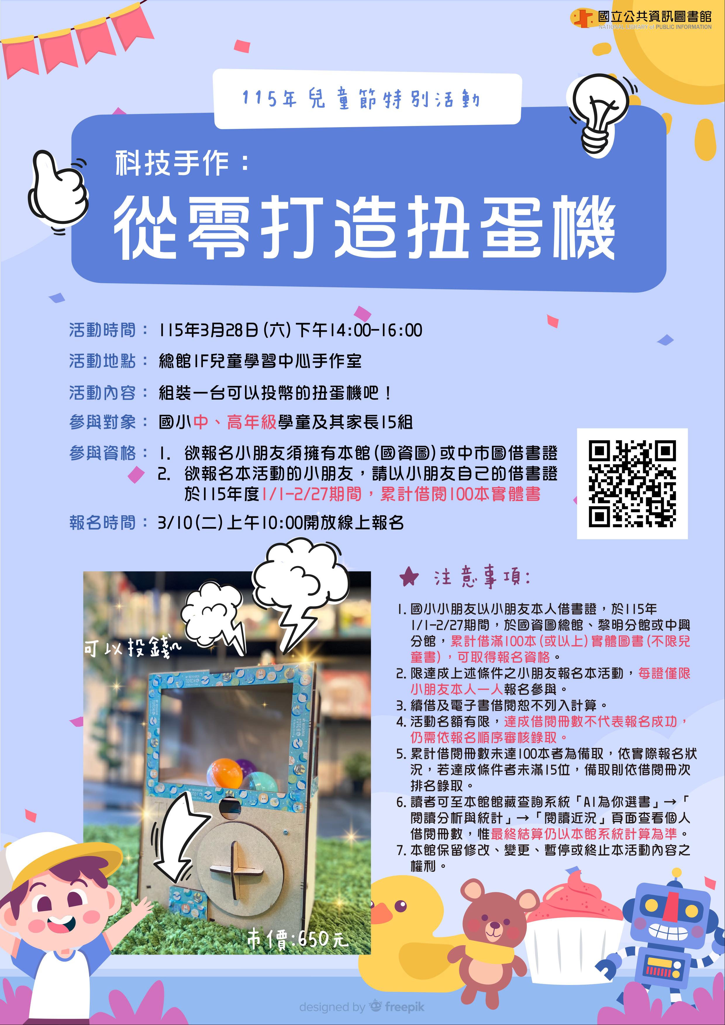 115年兒童節特別活動-科技手作:衝鋒飛車×扭蛋機