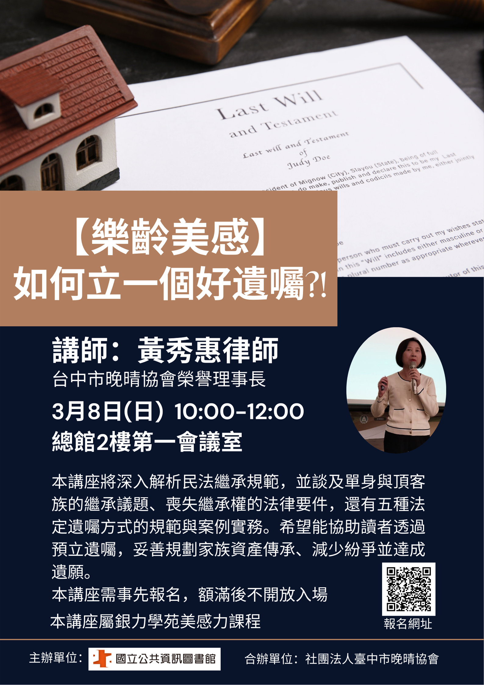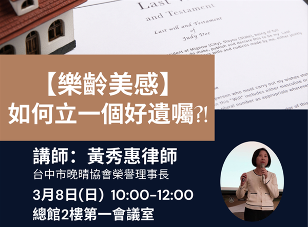 講師:黃秀惠律師(台中市晚晴協會榮譽理事長、詠律科思法律事務所主持律師)