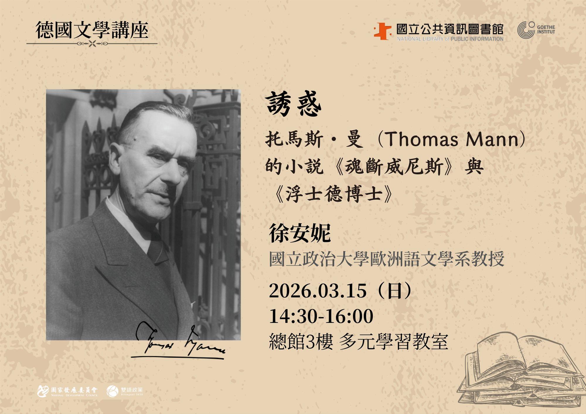 講座名稱:誘惑 – 托馬斯・曼(Thomas Mann)的小說《魂斷威尼斯》與《浮士德博士》