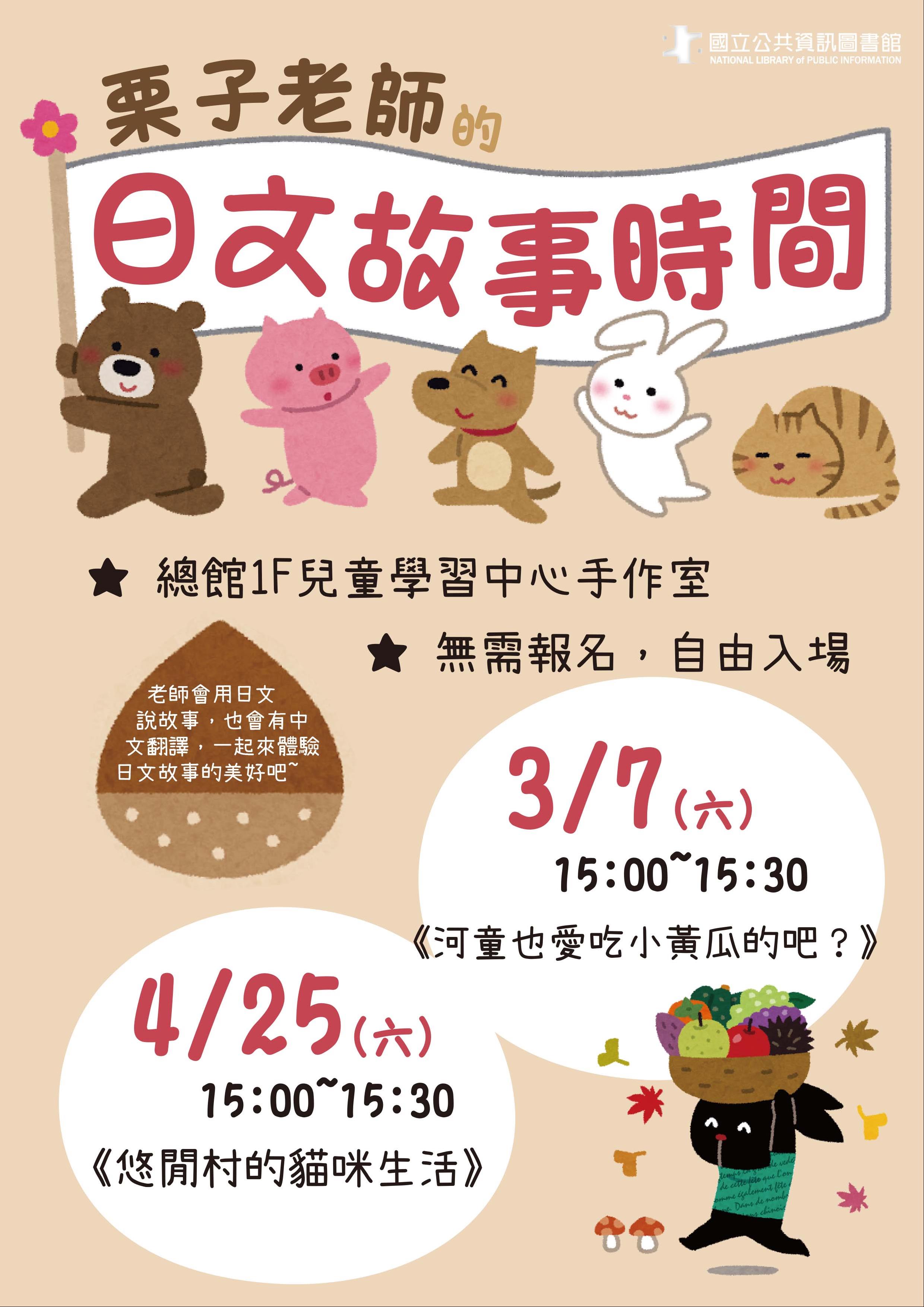 - 活動日期:3/7 15:00~15:30、4/25 15:00~15:30