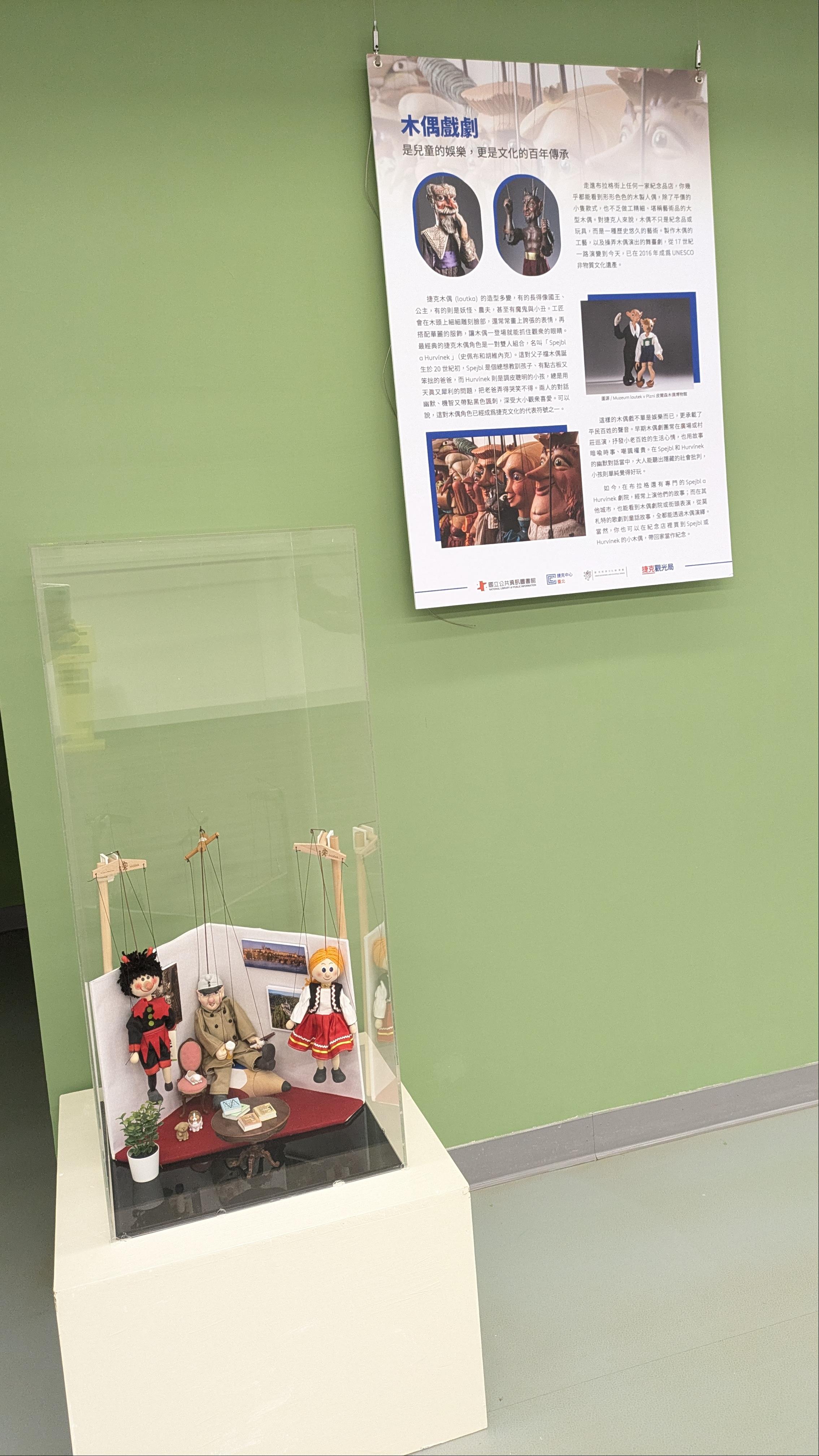 為使民眾能更全面地感受捷克文化的獨特魅力,特別搭配精彩的實體文物展示。捷克經濟文化辦事處、捷克觀光局以及捷克共和國國家之友高嵩明先生,共同提供了多件在捷克文化中具代表性的珍貴展品,包含了充滿故事性的捷克木偶(loutka)、色彩鮮豔且工藝精湛的傳統服飾(kroj)、獨具特色的溫泉杯(lázeňský pohárek),以及一系列精緻的捷克美食模型。這些豐富多元的展品將與書籍典藏相互輝映,共同構築一個令人身歷其境的捷克文化體驗空間,感受捷克人民的藝術巧思與生活美學。