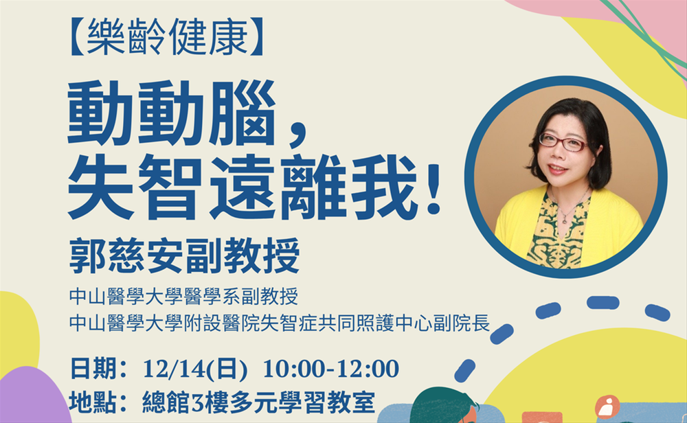 講師:郭慈安副教授 (中山醫學大學醫學系副教授、中山醫學大學附設醫院失智症共同照護中心副院長)