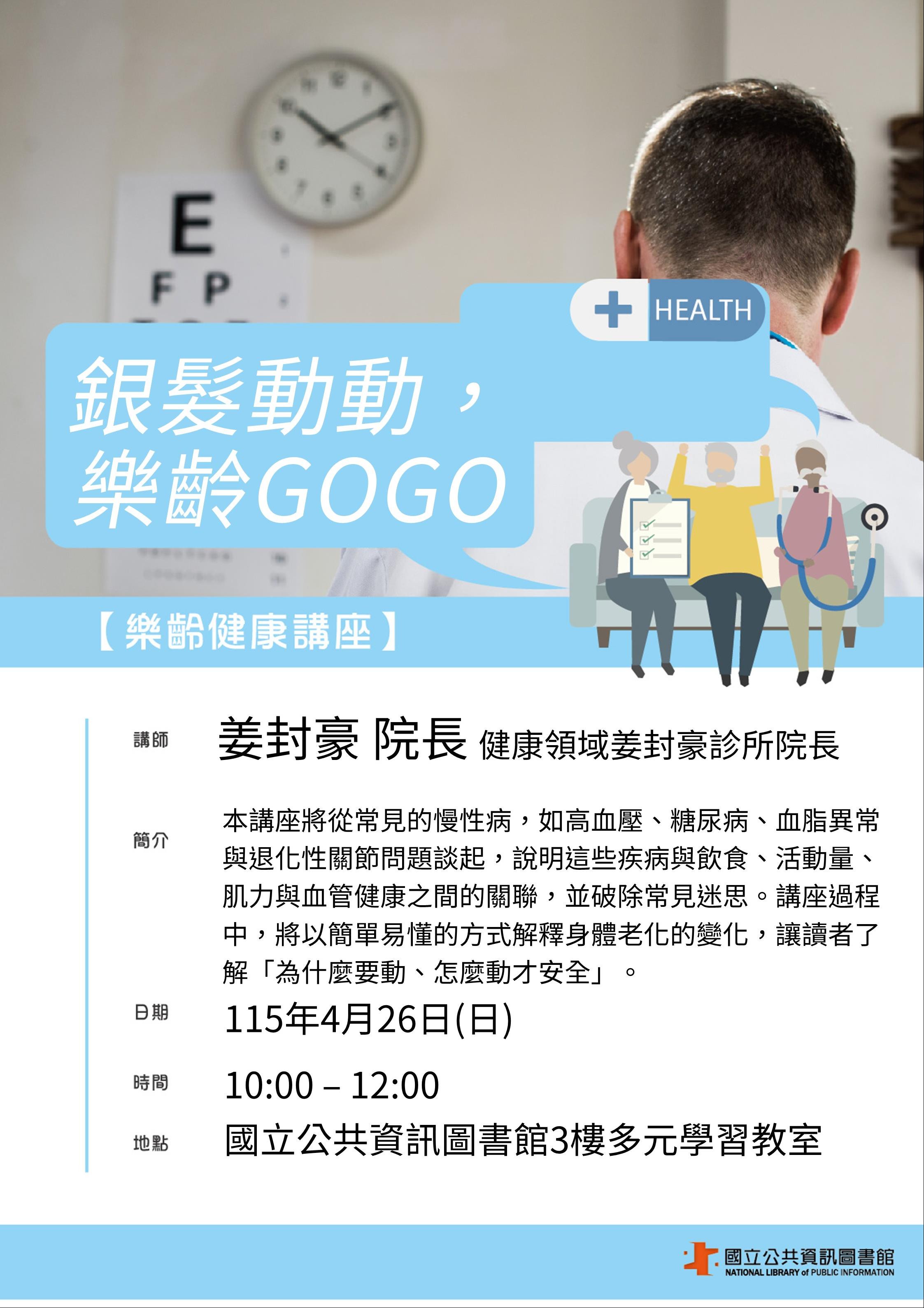 本講座結合醫學專業與生活化實務,協助長輩在日常生活中建立安全、可行且有效的健康習慣。內容將從常見的慢性病,如高血壓、糖尿病、血脂異常與退化性關節問題談起,說明這些疾病與飲食、活動量、肌力與血管健康之間的關聯,並破除常見迷思。講座過程中,將以簡單易懂的方式解釋身體老化的變化,讓長輩了解「為什麼要動、怎麼動才安全」。同時穿插互動式帶領,現場示範適合居家與社區的簡易運動,包括關節活動度、平衡訓練與基礎肌力動作,讓長輩能即學即用。透過輕鬆、生動且具參與感的方式,幫助年長者建立「動得久、動得穩、病來慢」的健康生活觀念,提升自我照顧能力與生活品質。