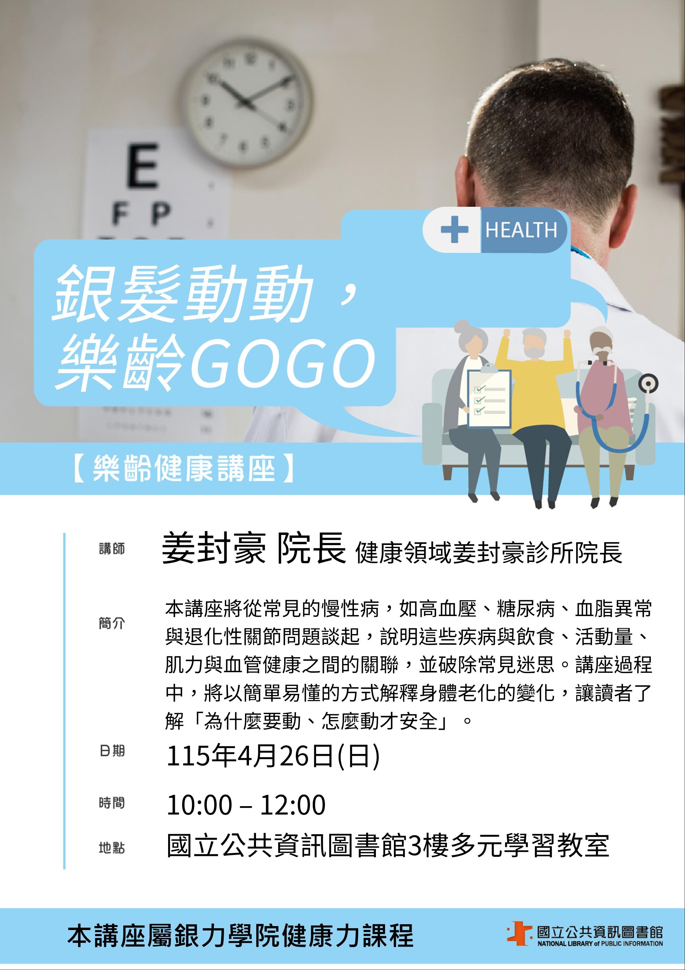 本講座結合醫學專業與生活化實務,協助長輩在日常生活中建立安全、可行且有效的健康習慣。內容將從常見的慢性病,如高血壓、糖尿病、血脂異常與退化性關節問題談起,說明這些疾病與飲食、活動量、肌力與血管健康之間的關聯,並破除常見迷思。講座過程中,將以簡單易懂的方式解釋身體老化的變化,讓長輩了解「為什麼要動、怎麼動才安全」。同時穿插互動式帶領,現場示範適合居家與社區的簡易運動,包括關節活動度、平衡訓練與基礎肌力動作,讓長輩能即學即用。透過輕鬆、生動且具參與感的方式,幫助年長者建立「動得久、動得穩、病來慢」的健康生活觀念,提升自我照顧能力與生活品質。