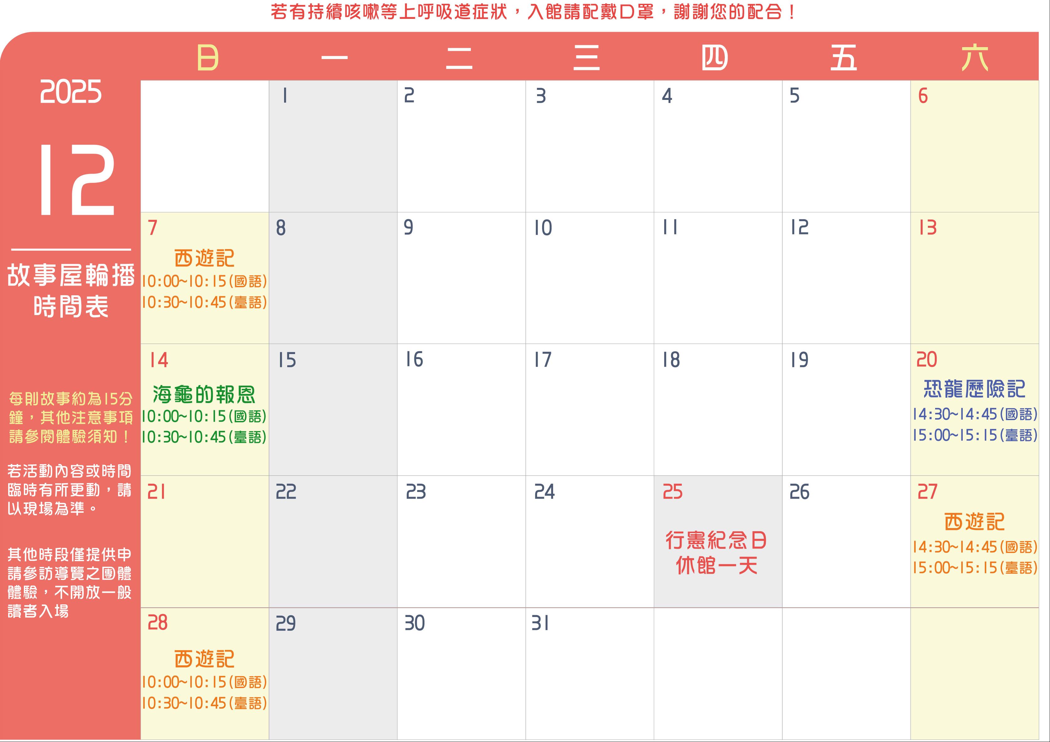 【兒童學習中心12月份故事屋活動一覽】12/7(日