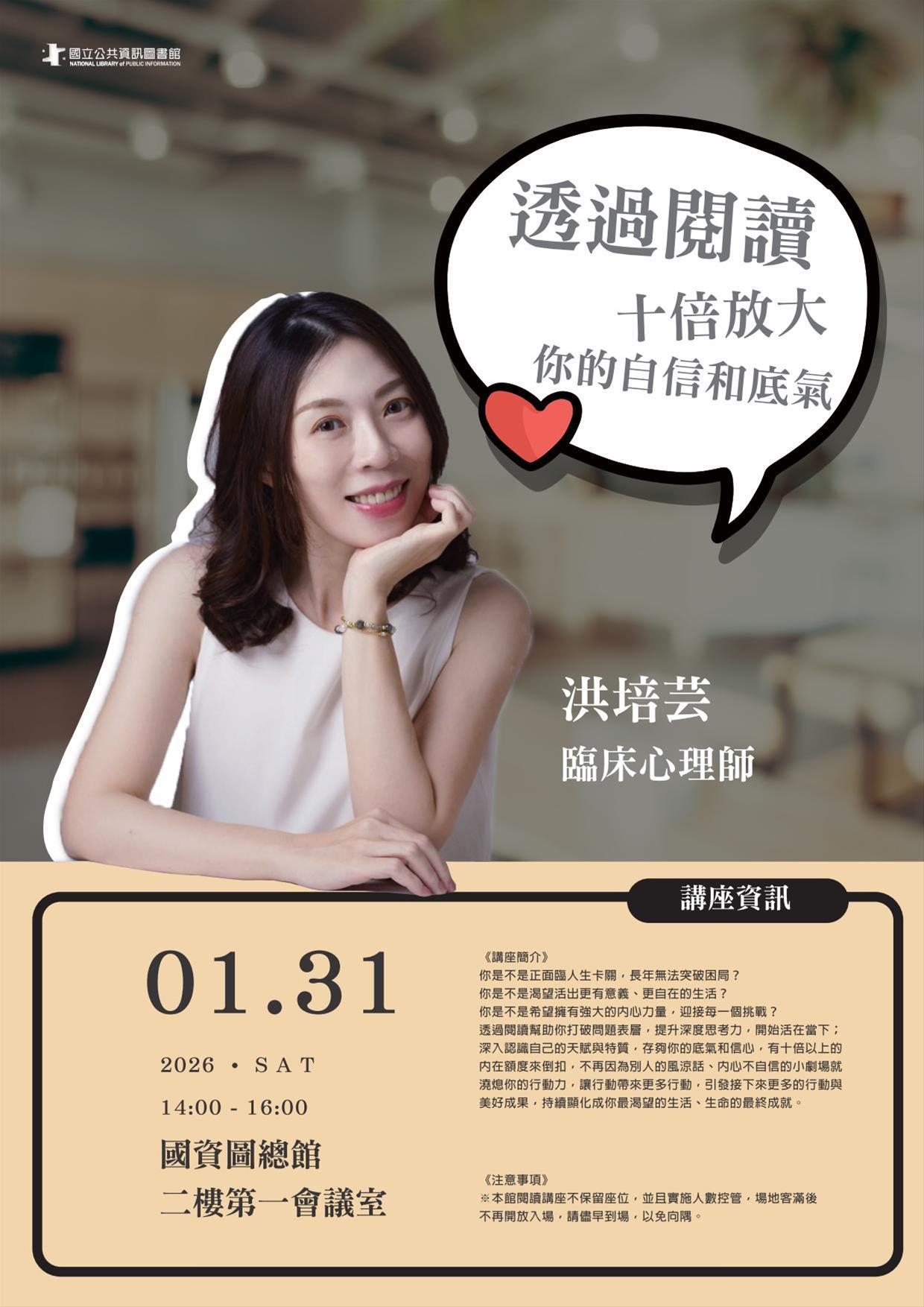 ********************************************************************《注意事項》※本館閱讀講座免費自由入場,入場時間為13:30-14:00(7歲以下孩童請斟酌入場),本館講座不保留任何座位,敬請及早入場,以免向隅。場地客滿後,不再開放入場,講座地點將視參與人數做必要之調整,不便之處敬請見諒!