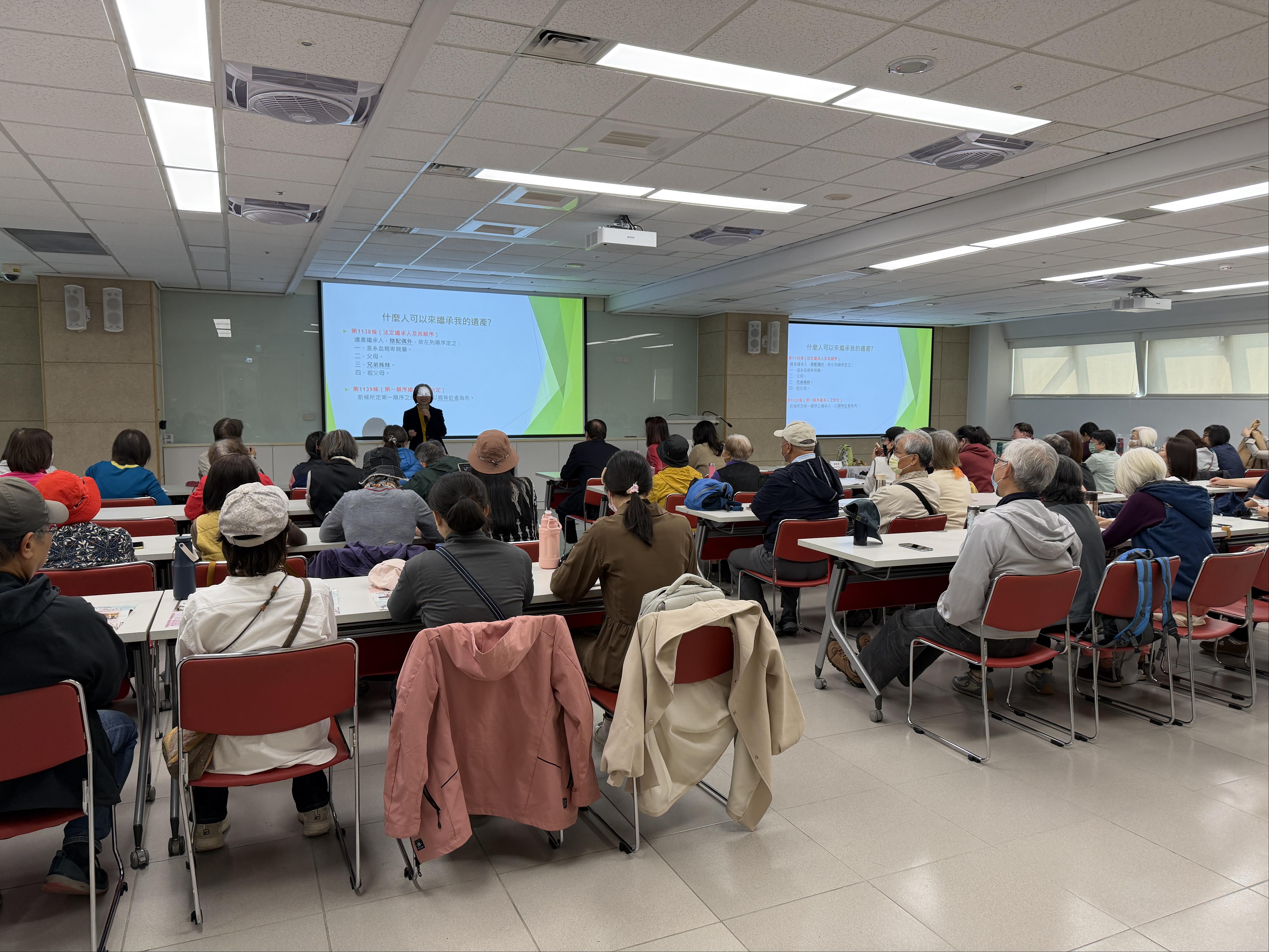 今日樂齡美感力講座邀請到黃秀惠律師,分享「如何立一個好遺囑」,身後事是每個人都可能會遇到的事情,律師今日用淺顯易懂的說明以及實際案例,帶大家了解立遺囑相關實務。