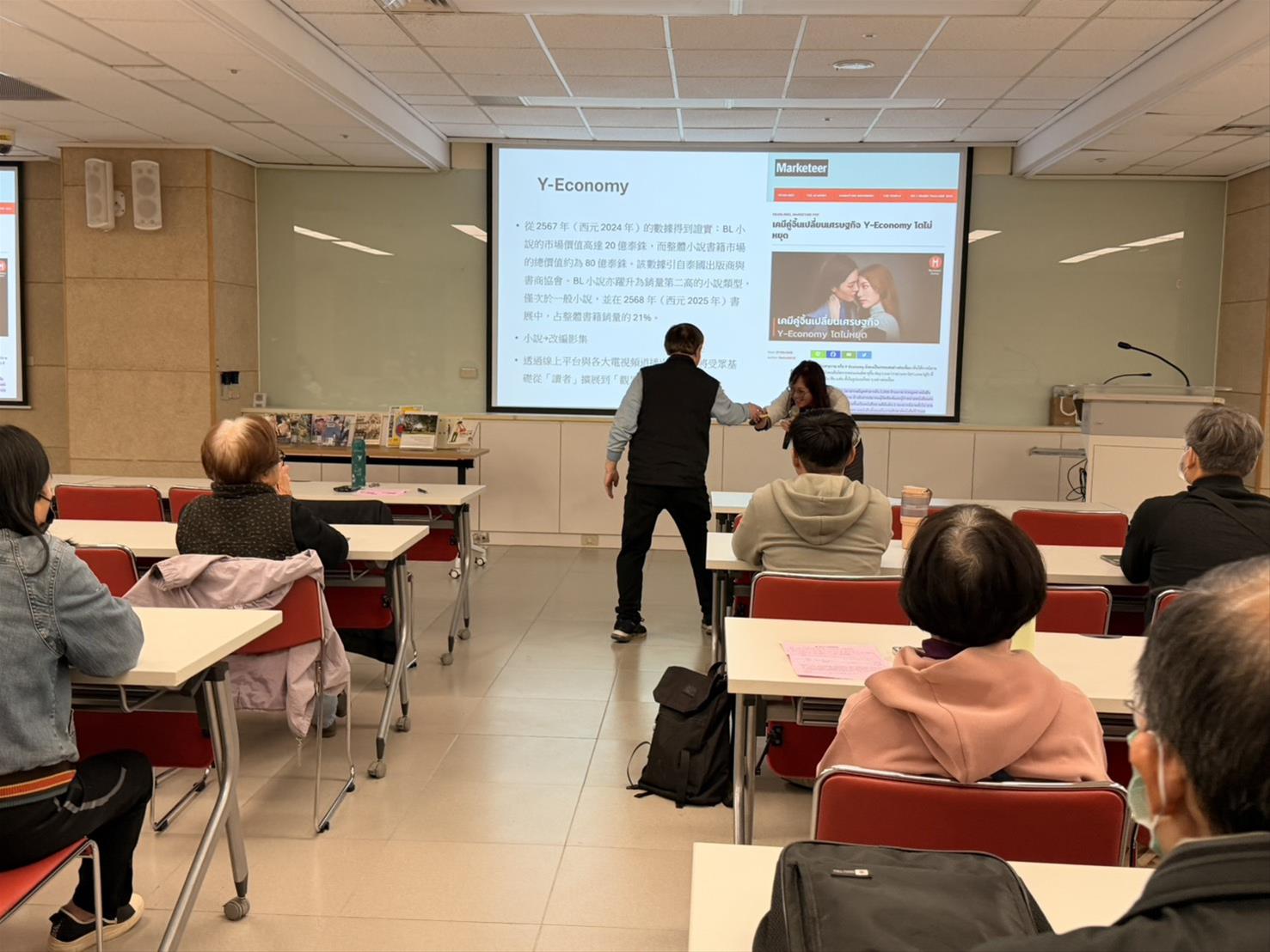 整場講座不僅是 BL 小說的閱讀分享,更是一場跨越時空的文化導覽。講師以深厚的泰文語言能力與長年田野觀察經驗,將泰國歷史、地理、宗教、飲食與古代文學層層拆解,讓聽眾理解 BL 文學並非單一類型的流行文本,而是能承載複雜文化脈絡與社會議題的重要載體。