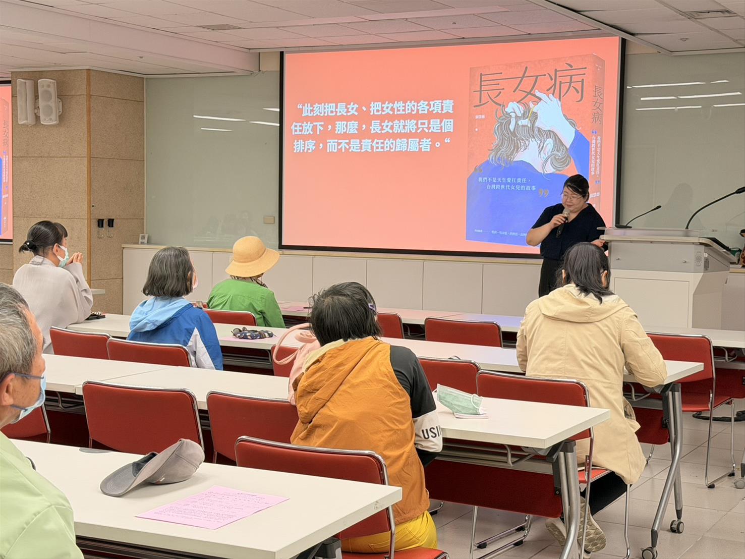 本館週六講座邀請張慧慈老師,以《長女病:我們不是天生愛扛責任,台灣跨世代女兒的故事》為起點,帶領讀者看見長女角色背後的情感壓力與責任結構。講座指出,長女常在家庭中被期待承擔照顧與付出,久而久之內化為「應該如此」的責任劇本,卻忽略自身需求。