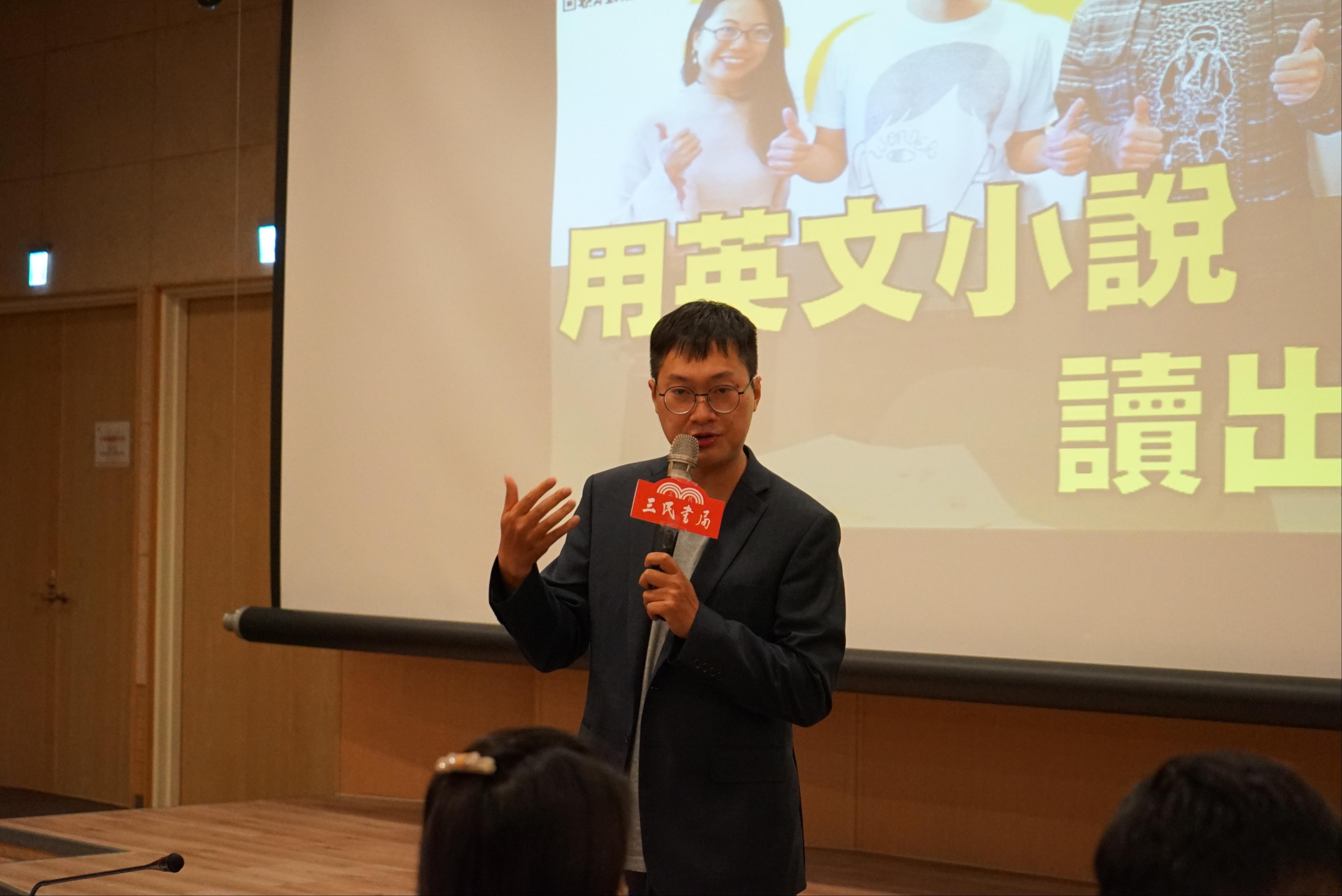 你害怕英文嗎?面對外國人與你交談,是否腦中百轉千迴,想著該如何組出正確的句子?世界是個地球村,增進自己的語文能力厚植自己的軟實力,才能夠在眾多人才中脫穎而出,本次閱讀講座邀請到《英文騎士團長》,也經營「亡牌教師」YouTube 頻道的戴逸群老師,與同為「英文小說中毒團隊」成員的林冠瑋擔任講師,分享在英文教學上的經驗,如何引發同學的學習興趣,戴老師運用英文繪本、橋梁書與小說,輔以新課綱19項重大議題和藍思分級,幫助教師循序漸進地帶領學生習得道地英文,並且樂在英語閱讀,老師介紹了許多他用以教學的小說、繪本與文本,像是奇蹟男孩內就有許多金句,非常適合教學,老師提到選擇閱讀資料時,以90%單字是你認識的為原則,較容易進入閱讀中,課程裡還推薦Netflix內許多精彩的影集也是學習英語的好資源。