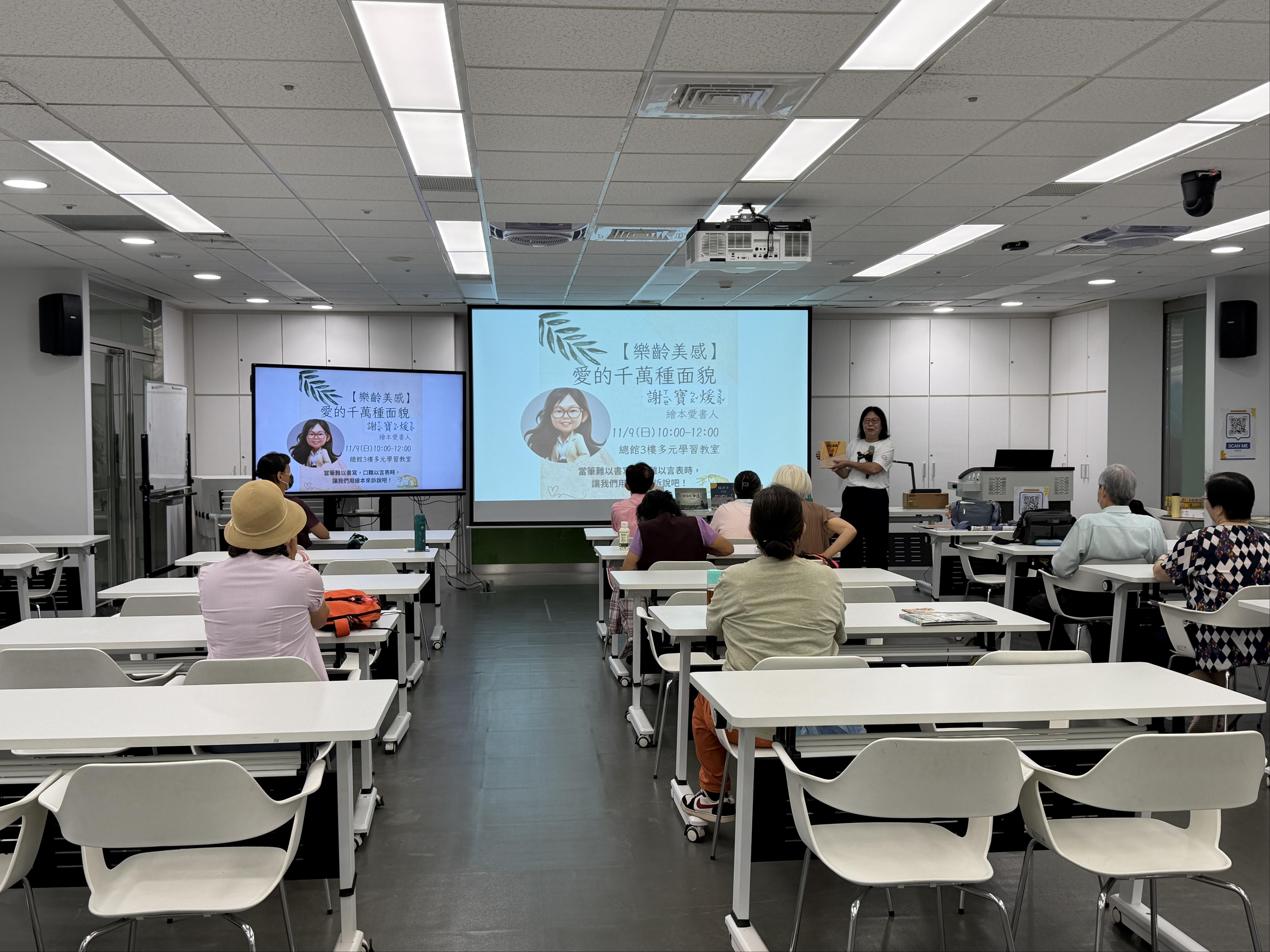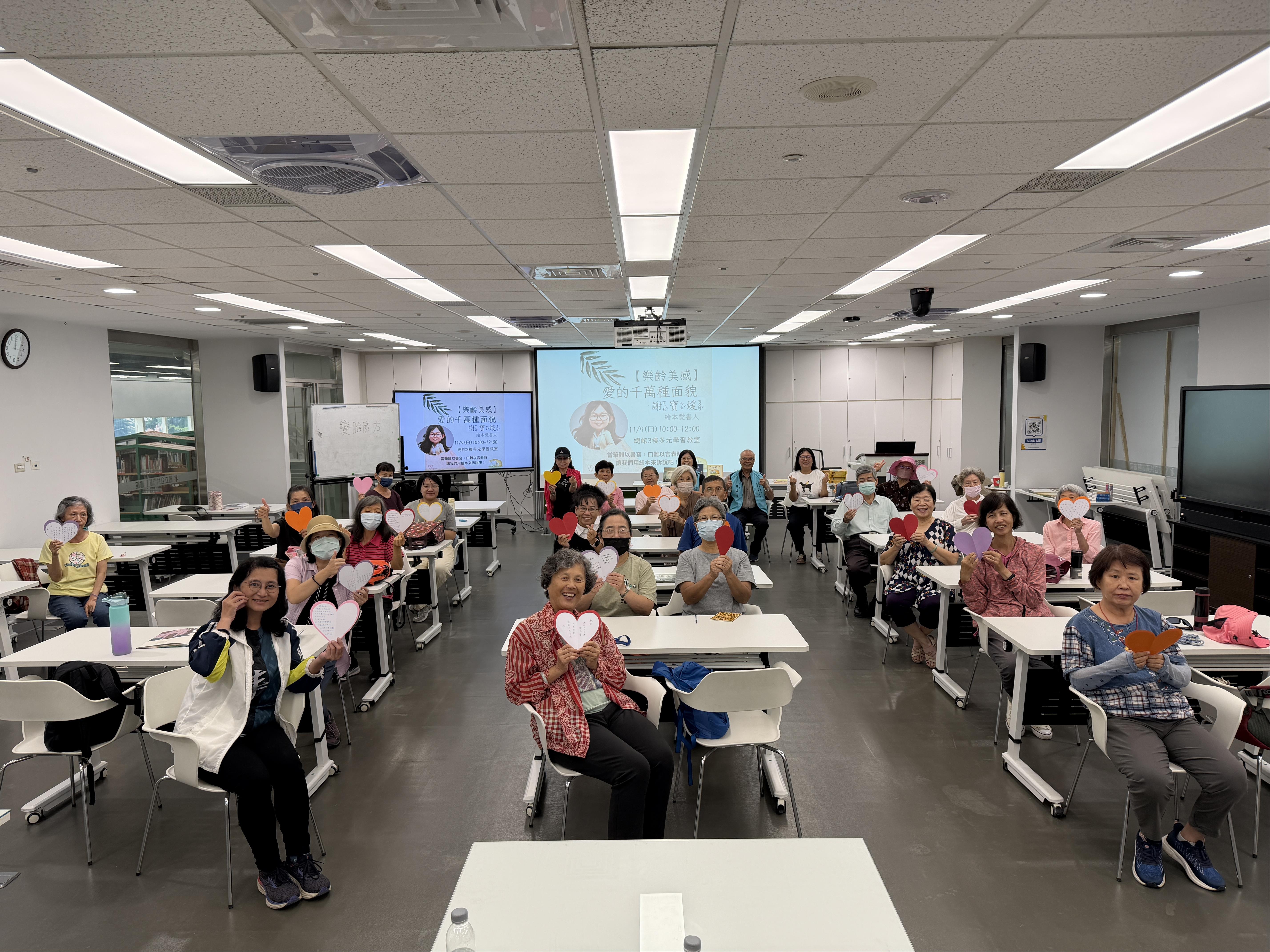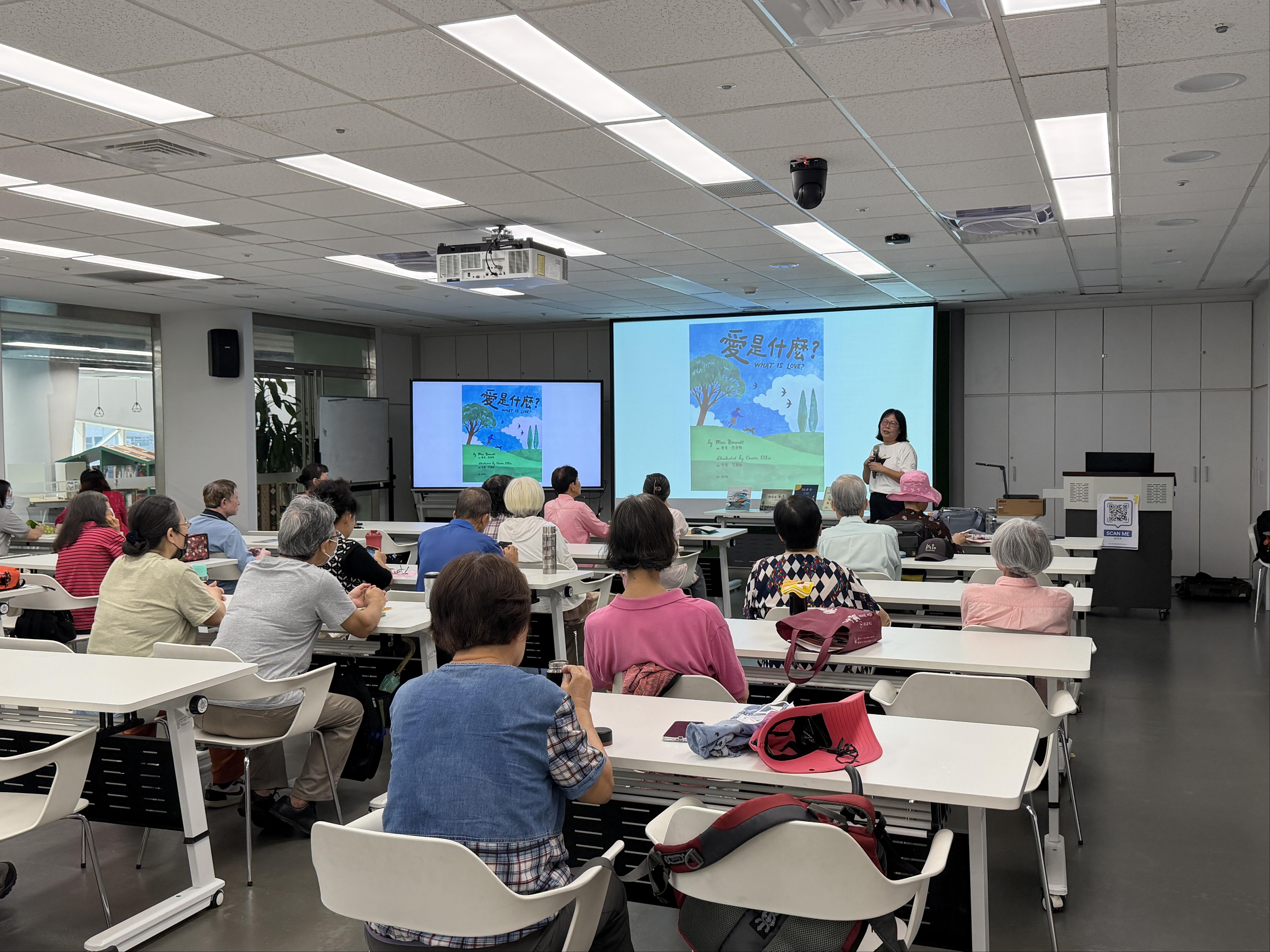 今日樂齡美感講座邀請到謝寶煖副教授,用繪本來分享「愛的千萬種風貌」,講師是個非常熱愛繪本的愛書人,透過繪本體悟許多人生的道理,今日分享了許多講述愛的繪本,讓大家在講座中認識各種不一樣的愛。講師幽默風趣,分享了許多本繪本,用許多生活中的例子讓學員更加體會繪本中的意涵,而且穿插桌遊及卡片創作等不同活動,讓整場講座充滿活力及笑聲,每個人都滿載而歸。