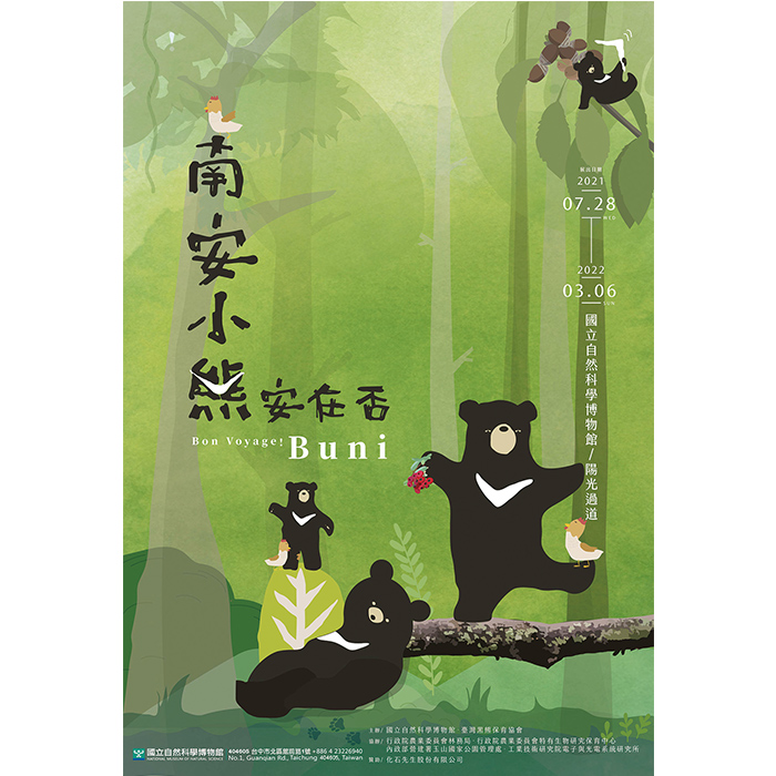 國立自然科學博物館自即日起至2022年3 月6 日止,在「陽光過道」南側推出「南安小熊安在否」特展,有高約80 公分的館藏臺灣黑熊骨骼標本,也特別搭建南安瀑布模擬場景,詳細介紹南安小熊從被遊客發現、被照顧訓練到野放的歷程。此次特展由國立屏東科技大學教授黃美秀指導,並與臺灣黑熊保育協會共同策劃,展覽分為4 個主題單元:「來自森林」、「人間落難」、「回家之路」與「我在友熊國」。