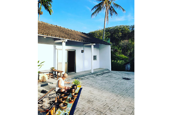 正廳旁廂房,還有適合包場聚餐的空間,也能時而舉行講座課程;再往後探去,另有一飲茶空間,家具與茶桌古色古香,風景為之轉變;而更裡面,又一間榻榻米房,有獨立窄門,坐在床沿,望出門外院落,40年石朴老樹穩穩踩栽院牆旁,近、中、遠視野一同匡列,門框剪影、院埕老樹與天空飄過的白雲,好似一幅和歌中的四季。坐在這裡,輕鬆喝茶或咖啡,偶爾一小口布朗尼,或者大咬一口在地居民送來的玉米、地瓜,靜觀的人融入環境,與老厝、天地共存,這是庸碌城市生活之外的一大享受。
