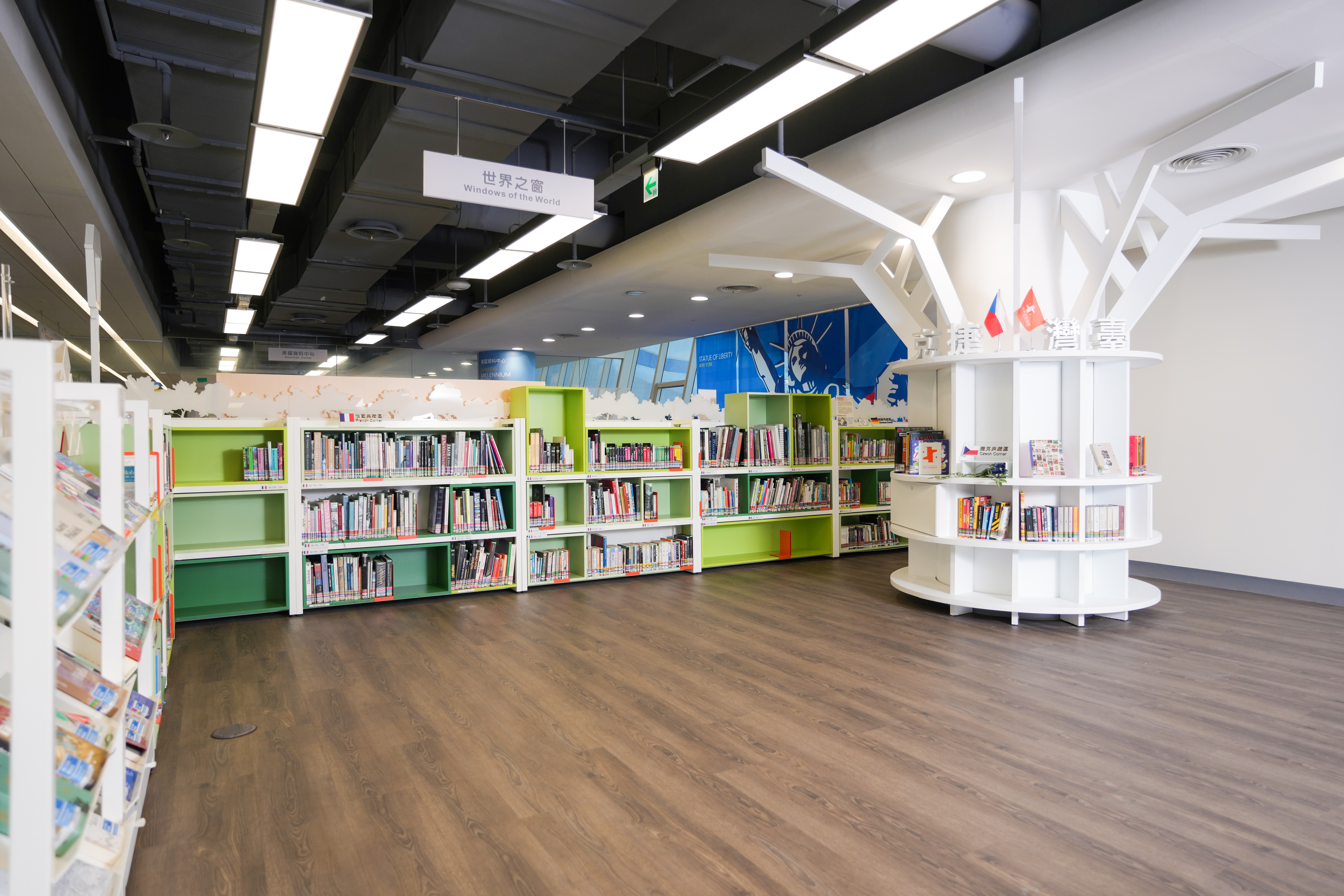 世界之窗(Windows of the World)旨在透過閱讀介紹及推廣世界各國文化,並以結合書籍典藏以及多元展覽之方式,成為一個在圖書館中讓讀者能認識各國文化的窗口。區域內目前設有法國典藏區、德國典藏區以及捷克典藏區,分別與法國在台協會學術合作與文化處、歌德學院(台北)德國文化中心以及捷克中心臺北(Czech Centre Taipei)等三個官方單位合作設立。