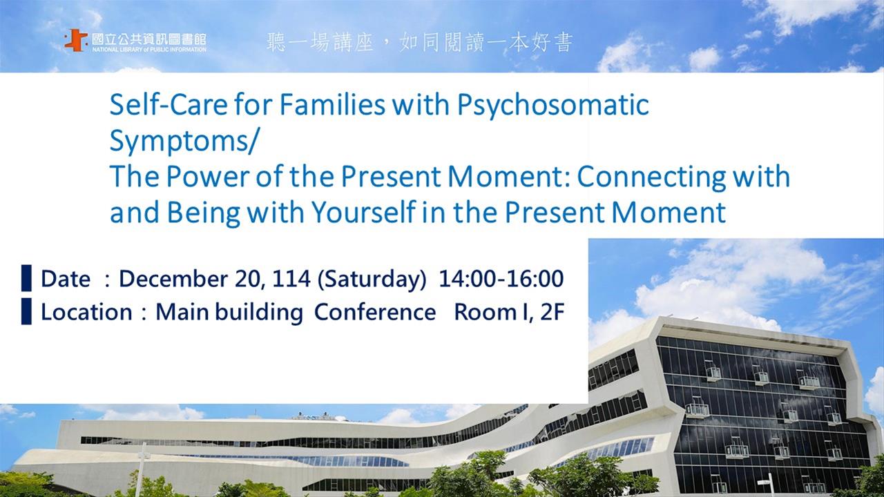 This lecture is authorized by the lecturer and will be broadcast live online.《Introduction》The first half of this presentation focuses on self-care. Besides explaining the characteristics and impacts of psychosomatic illnesses and highlighting the common psychological pressures and challenges family members face while accompanying their patients, the presentation will further guide family members in learning how to be gentle with themselves while accompanying their patients.